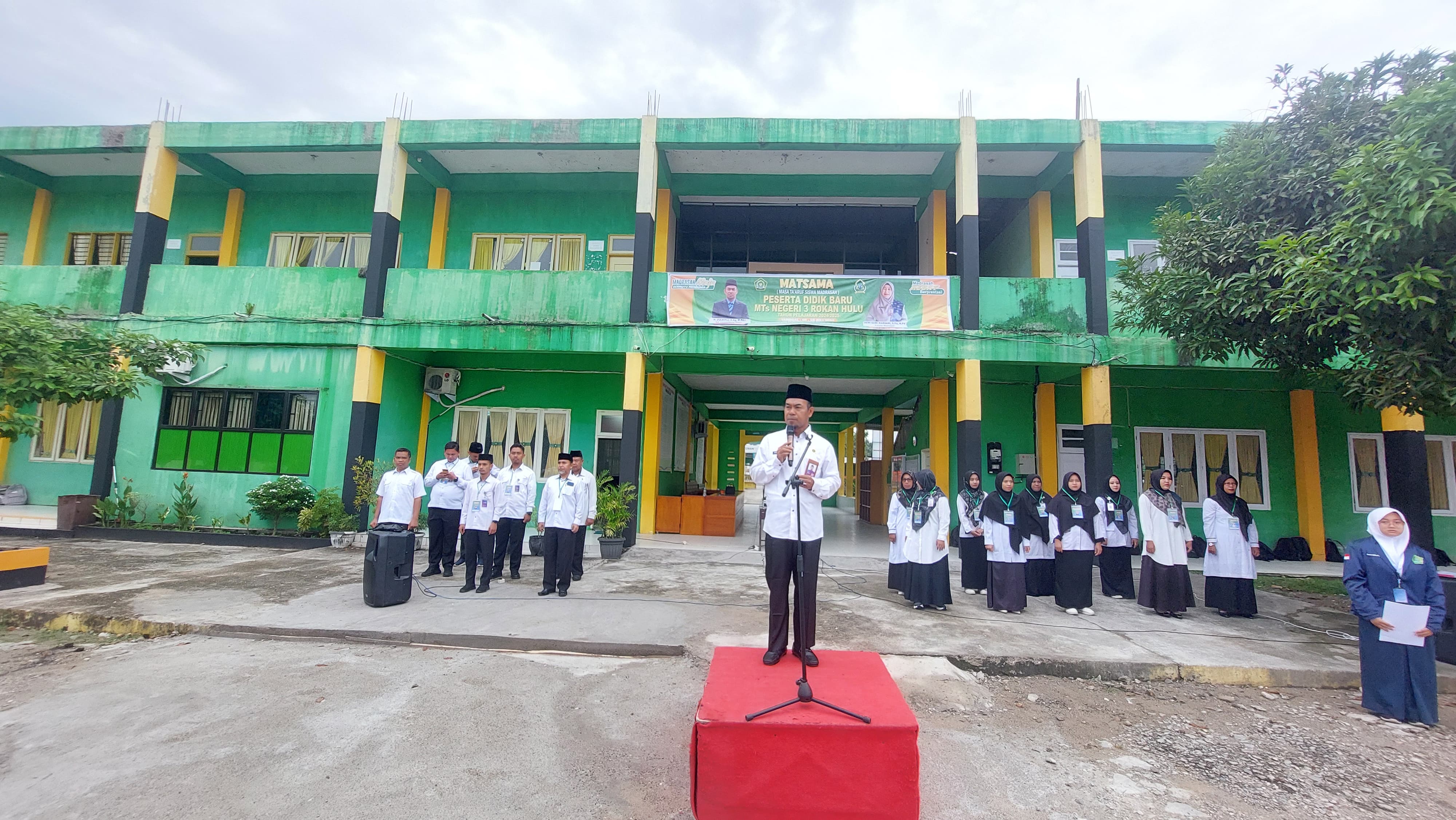 Rokan Hulu ( Kemenag) - Kepala Kantor Kementerian Agama Rokan Hulu, H. Zulkifli hadiri sekaligus memberikan arahan dalam upacara pembukaan Masa Ta'aruf Siswa Madrasah (Matsama) MTsN 3 Rokan Hulu, Senin(8/7/2024).
