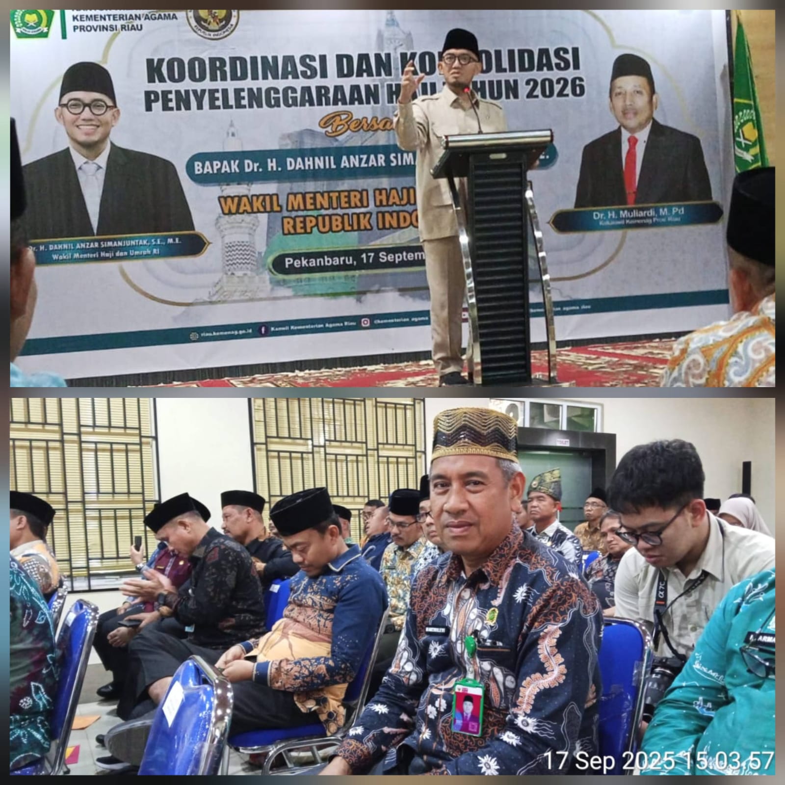 Rokan Hulu( Kemenag) – Kantor Kementerian Agama Kabupaten Rokan Hulu melalui Tim Task Force menghadiri Rapat Koordinasi dan Konsolidasi Penyelenggaraan Haji Tahun 2026 yang dilaksanakan di Kanwil Kemenag Riau, Pekanbaru, pada Rabu (17/9/2025).